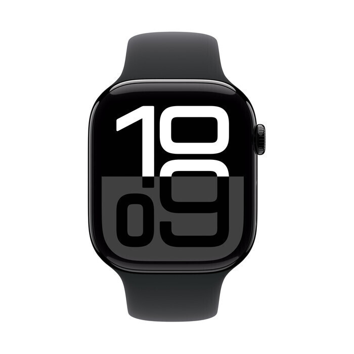 Apple Watch Series 10 Aluminium 46mm Αδιάβροχο με Παλμογράφο Jet Black με Black Sport Band S/M