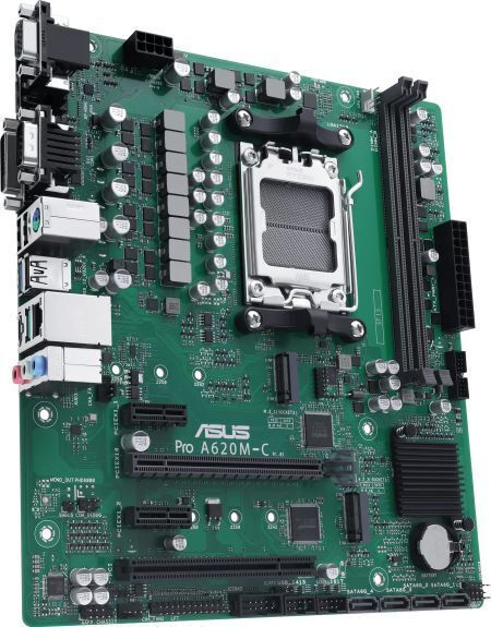 Η μητρική κάρτα Asus Pro A620M-C-CSM απευθύνεται σε επαγγελματίες και επιχειρηματίες που χρειάζονται μια αξιόπιστη και ευέλικτη λύση για τον υπολογιστή τους. Είναι μέρος της σειράς Pro της Asus, η οποία στοχεύει σε επιχειρησιακή χρήση και προσφέρει υψηλή απόδοση, αξιοπιστία και ασφάλεια. Η μητρική υποστηρίζει επεξεργαστές AMD Ryzen και είναι συμβατή με την τεχνολογία DDR5 μνήμης RAM.
