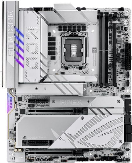Η Asus ROG Maximus Z890 Apex Wi-Fi είναι μια μητρική πλακέτα ATX υψηλών επιδόσεων, σχεδιασμένη για επεξεργαστές Intel 13ης και 14ης γενιάς με LGA 1851 socket και το προηγμένο chipset Intel Z890 . Υποστηρίζει DDR5 RAM με εξαιρετικές δυνατότητες overclocking, καθιστώντας την ιδανική για ενθουσιώδεις χρήστες και overclockers. Διαθέτει ενσωματωμένο Wi-Fi 7 και θύρα 2.5Gbps Ethernet για ταχύτατη συνδεσιμότητα, καθώς και πολλαπλές θύρες USB 4.0 και USB-C για εκτεταμένη υποστήριξη σύγχρονων περιφερειακών. Οι υποδοχές M.2 PCIe 5.0 εξασφαλίζουν κορυφαίες ταχύτητες αποθήκευσης, ενώ το προηγμένο σύστημα ψύξης και τα premium υλικά κατασκευής εγγυώνται τη μέγιστη σταθερότητα. Απευθύνεται σε gamers, δημιουργούς περιεχομένου και επαγγελματίες που απαιτούν απόδοση αιχμής και δυνατότητες προσαρμογής.