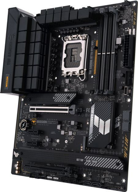 Η Asus TUF GAMING H770-PRO WIFI είναι μια μητρική κάρτα Intel H770 LGA 1700 ATX που είναι έτοιμη για επεξεργαστές Intel Core 13ης & 12ης γενιάς. Διαθέτει υποδοχή PCIe 5.0, τέσσερις υποδοχές PCIe 4.0 M.2, υποστήριξη μνήμης DDR5, Ethernet Intel 2.5Gb, DisplayPort, HDMI, SATA 6 Gbps, USB 3.2 Gen 2×2 Type-C και front USB 3.2 Gen 1 Type-C. Υποστηρίζει επίσης Thunderbolt (USB4), Aura Sync και AEMP II. Η μητρική κάρτα είναι εξοπλισμένη με 14 (50A)+1 (60A)+1 στάδια ισχύος που συνδυάζουν MOSFETS υψηλής και χαμηλής πλευράς και οδηγούς σε ένα μόνο πακέτο για να παρέχουν ισχύ, απόδοση και σταθερή απόδοση για όλους τους συμβατούς επεξεργαστές Intel. Προσφέρει επίσης ολοκληρωμένες επιλογές ψύξης για να καύση τους τελευταίους επεξεργαστές Intel. Η μητρική κάρτα TUF GAMING H770 διαθέτει ευέλικτα εργαλεία για να ρυθμίσετε κάθε πτυχή του συστήματός σας, επιτρέποντας την επίδοση των τροποποιήσεων για να ταιριάζει ακριβώς με τον τρόπο που παίζετε.