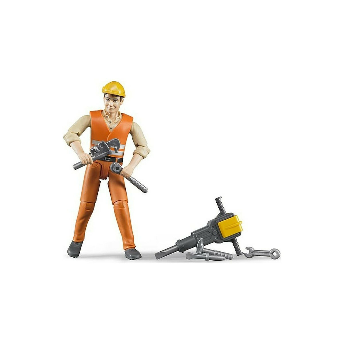 Ειδώλιο εργάτη με πνευματικό σφυρί , κράνος και εργαλεία.