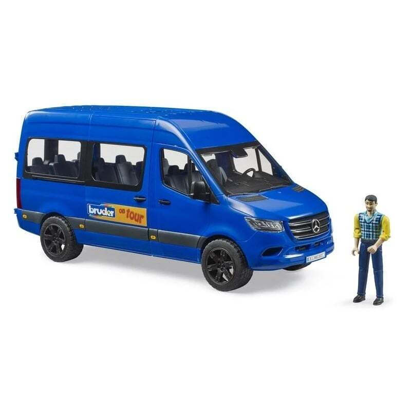 Το νέο μοντέλο Sprinter είναι πλέον μέρος της σειράς Bruder. Η πόρτα της καμπίνας του οδηγού και οι πίσω πόρτες ανοίγουν. Ένα ιδιαίτερο χαρακτηριστικό είναι η νέα συρόμενη πόρτα στην πλευρά του συνοδηγού. Το εσωτερικό είναι σχεδιασμένο με ευελιξία. Οι σειρές των πίσω καθισμάτων μπορούν να τοποθετηθούν σε διαφορετικές κατευθύνσεις θέασης ή να αφαιρεθούν εντελώς. Το όχημα περιλαμβάνει τον οδηγό. Όλες οι παγκόσμιες φιγούρες από την ευρεία γκάμα Bruder συνδυάζονται με αυτό το όχημα.