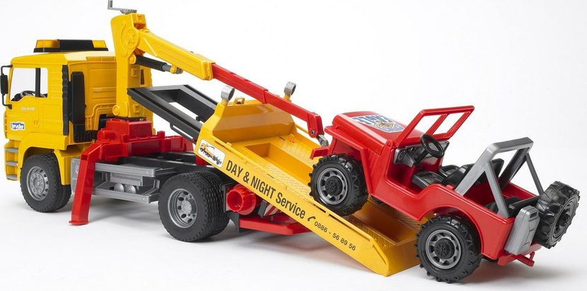 Φορτηγό Man Οδικής Βοήθειας με γερανό & τζιπάκι , από την εταιρία Bruder γνωστή για την κατασκευή στόλου οχημάτων, πανομοιότυπων με αληθινά!