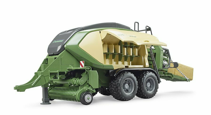 Το BigPAck 1290 είναι το κορυφαίο μοντέλο της KRONE και μπορεί πλέον να βρεθεί στη γεωργική γκάμα της BRUDER. Όπως και το πρωτότυπο, το παιχνίδι εντυπωσιάζει επίσης με καινοτόμες λειτουργίες. Το pick-up μπορεί να αναδιπλωθεί και κινείται με πλευρικούς τροχούς. Τα πλευρικά πτερύγια μπορούν να ανοίξουν και να παρέχουν πρόσβαση στους λεπτομερείς μηχανισμούς. 2 μεγάλα δεμάτια μπορούν να εισαχθούν μέσω του μεσαίου πτερυγίου και η πρέσα τα μεταφέρει αυτόματα στην απόρριψη όταν είναι ενεργή η περισυλλογή. Αυτό το εξαιρετικό νέο μοντέλο της BRUDER ταιριάζει σε όλα τα τρακτέρ των σειρών 2000, 3000 και 4000.