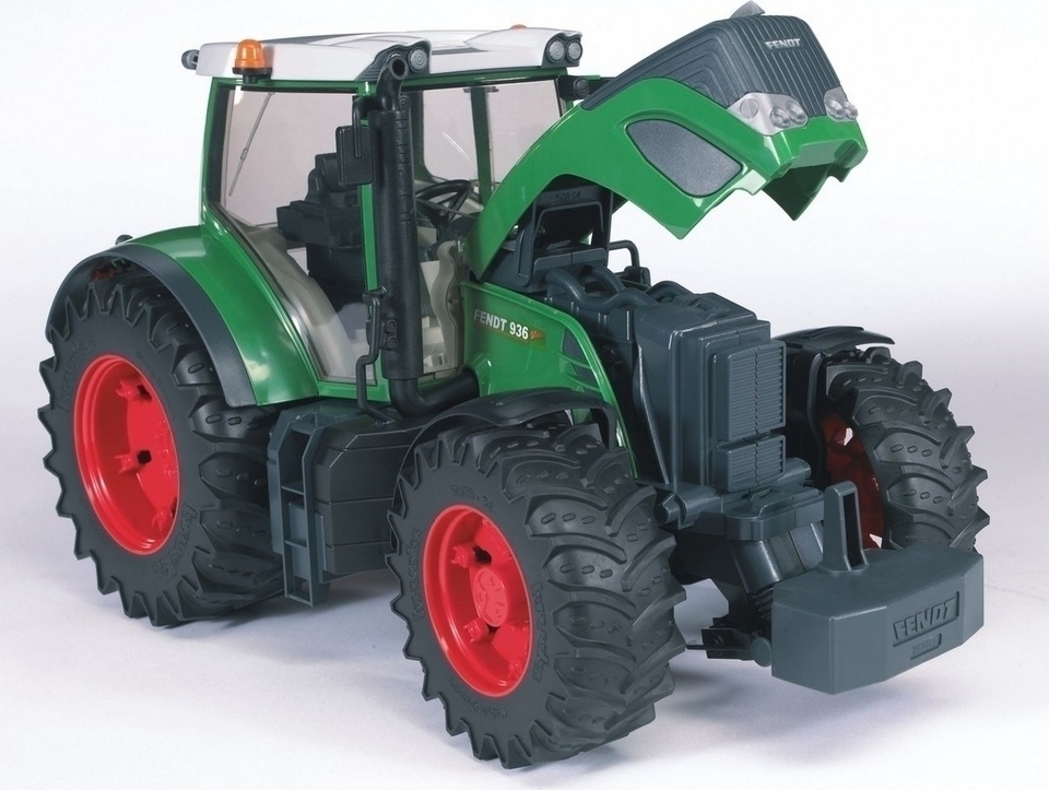 Με την εισαγωγή της σειράς μεγάλων τρακτέρ 03000 το φθινόπωρο του 2004, η BRUDER κατάφερε να δημιουργήσει μια πολύ επιτυχημένη σειρά προϊόντων τρακτέρ παιχνιδιών που δεν μπορεί να νικήσει όσον αφορά τη λειτουργικότητα και την αισθητική. Προσθέτουμε τώρα το μοντέλο Fendt 936 Vario σε αυτήν τη σειρά τρακτέρ. Έχει τα ίδια χαρακτηριστικά με τα άλλα μοντέλα της σειράς μεγάλων τρακτέρ μας, δηλαδή μια πλήρως εφυαλωμένη καμπίνα με ανοιχτές πόρτες, ένα αποσπώμενο εμπρόσθιο φορτίο, έναν πλήρη πλωτό εμπρόσθιο άξονα εκτός δρόμου και έναν σύνδεσμο ράβδου ζεύξης ρυθμιζόμενου ύψους. Χάρη στο μοναδικό σύστημα παιχνιδιού / διεύθυνσης που διαθέτει ένα τιμόνι που εκτείνεται μέσω της οροφής της καμπίνας, αυτό το τρακτέρ μπορεί εύκολα να χειριστεί τα παιδιά παρά την πλήρως γυάλινη καμπίνα. Αυτό το τρακτέρ μπορεί, φυσικά, να συνδεθεί με όλα τα ρυμουλκούμενα και τον γεωργικό εξοπλισμό που πωλείται από την BRUDER.