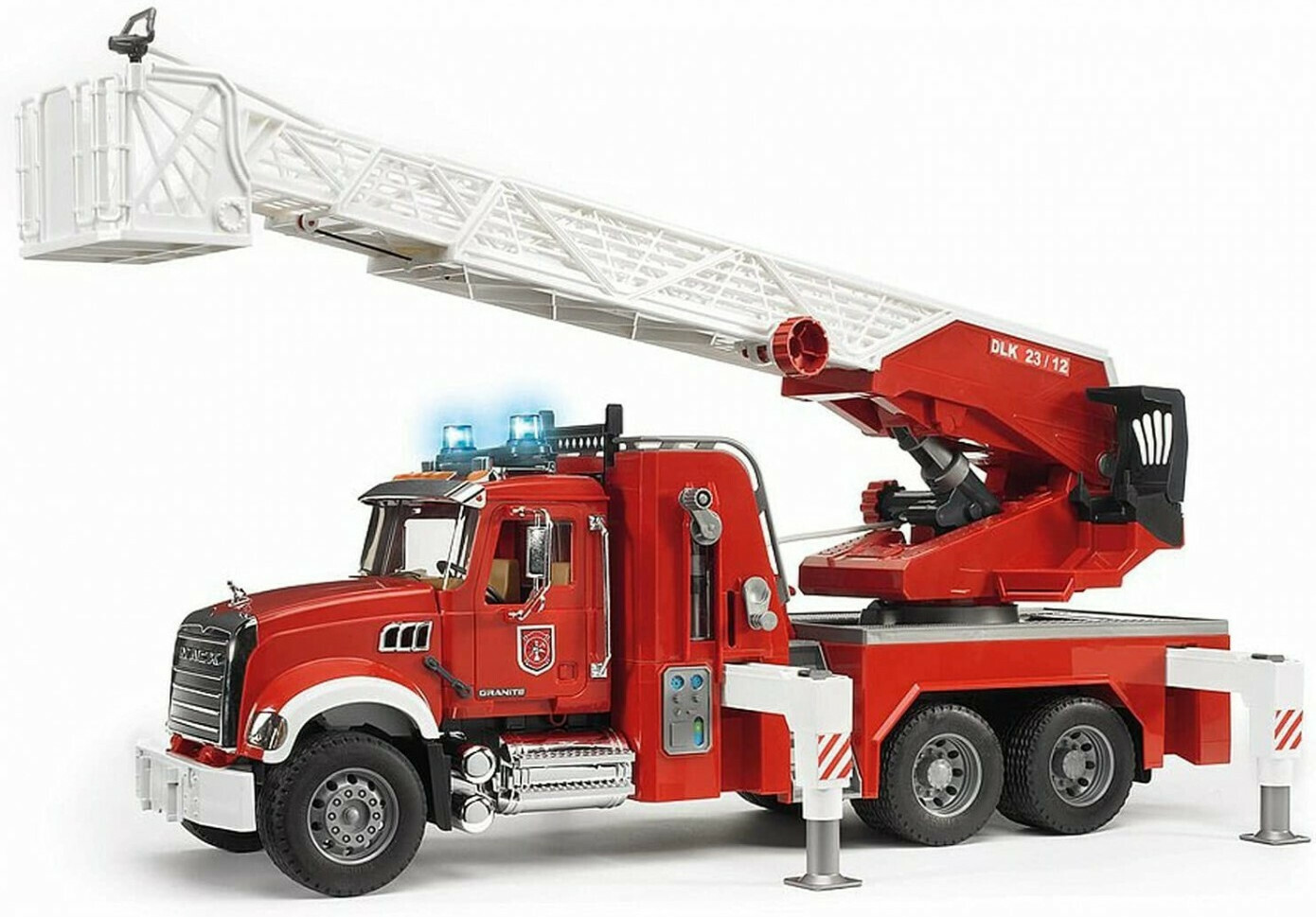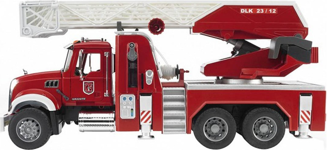 Φορτηγό πυροσβεστικής με πραγματική μάνικα νερού, με αναδιπλώμενους εξωτερικούς καθρέφτες και πόρτες που μπορούν να ανοίγουν.Διαθέτει υποδοχή για ακροφύσιο σωλήνα στο καλάθι σκάλα και τέσσερα επεκτάσιμα πόδια στήριξης που εξασφαλίζουν τη σταθερότητα του οχήματος .