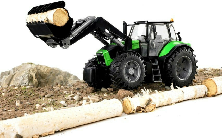 ΤΡΑΚΤΕΡ DEUTZ AGROTON ΜΕ ΦΟΡΤΩΤΗ 03081. Υπάρχουν πολλές ρεαλιστικές λεπτομέρειες για αυτό το εξαιρετικής αξίας τρακτέρ Deutz Agrotron X720. Περιλαμβάνει ένα αποσπώμενο μπροστινό μέρος, έναν κοτσαδόρο ρυμούλκησης, ένα καπό κινητήρα.