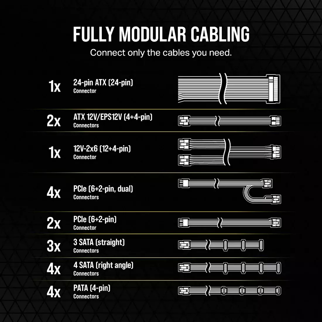 Τα πλήρως αρθρωτά τροφοδοτικά χαμηλού θορύβου της σειράς RMe της CORSAIR με συμμόρφωση ATX 3.1 και PCIe 5.1 παρέχουν αθόρυβη, αξιόπιστη τροφοδοσία με απόδοση 80 PLUS Gold σε μια μεγάλη ποικιλία κατασκευών Η/Υ.