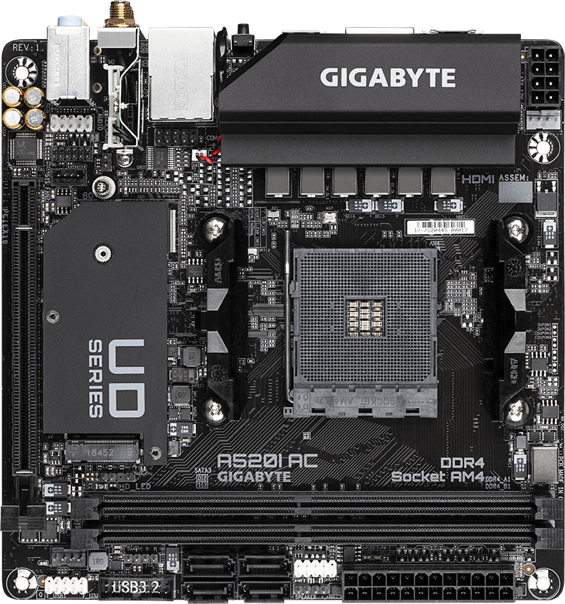 Η μητρική κάρτα Gigabyte A520I AC απευθύνεται σε χρήστες που αναζητούν μια μικρή και φορητή λύση για την κατασκευή ενός ισχυρού και ενεργειακά αποδοτικού συστήματος. Η κάρτα αυτή υποστηρίζει επεξεργαστές AMD Ryzen και διαθέτει δύο υποδοχές μνήμης DDR4 και μία M.2 υποδοχή για τοποθέτηση μονάδων αποθήκευσης.