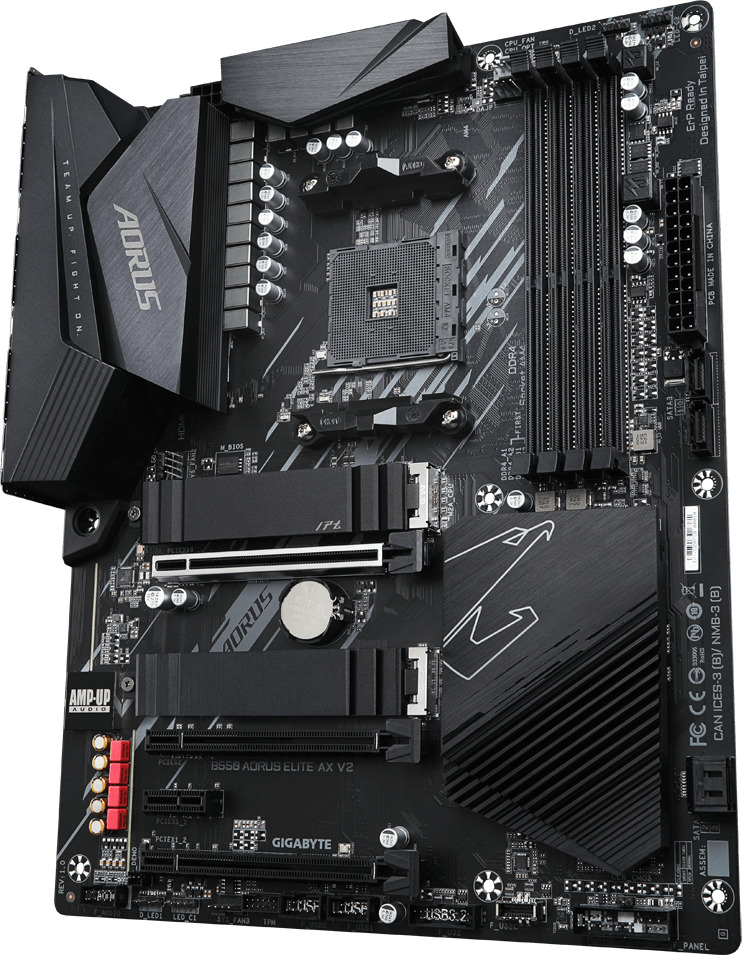 Μητρική κάρτα AMD B550 AORUS με διπλό ψηφιακό VRM 12+2 φάσεων, μεγάλες ψύκτρες επιφάνειας, υποδοχή PCIe 4.0 x16, διπλό PCIe 4.0/3.0 x4 M.2 με δύο θερμικά προστατευτικά, Intel WiFi 6 802.11ax, 2.5GbE LAN, RGB FUSION 2.0 και Q-Flash Plus.