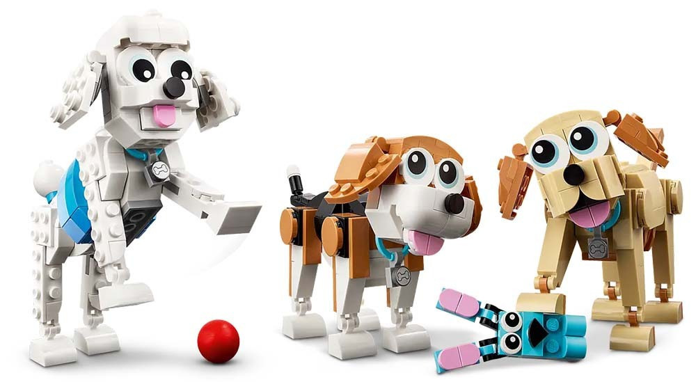 Αυτό είναι το απόλυτο σετ κατασκευής για τους λάτρεις των σκύλων! Κατασκεύασε ένα μπιγκλ, ένα κανίς ή ένα λαμπραντόρ για διασκεδαστικές βόλτες στο πάρκο με ένα μπαλάκι και ένα λουρί. Αργότερα, ανακατασκεύασέ τα σε ένα παιχνιδιάρικο μίνι σνάουζερ και ένα παγκ, ή μετάτρεψέ τα σε ένα χάσκι και ένα μακρύτριχο ντατσχάουντ. Η επιλογή είναι δική σου με αυτό το αξιαγάπητο 3 σε1 σετ . Η συσκευασία περιέχει 475 κομμάτια.