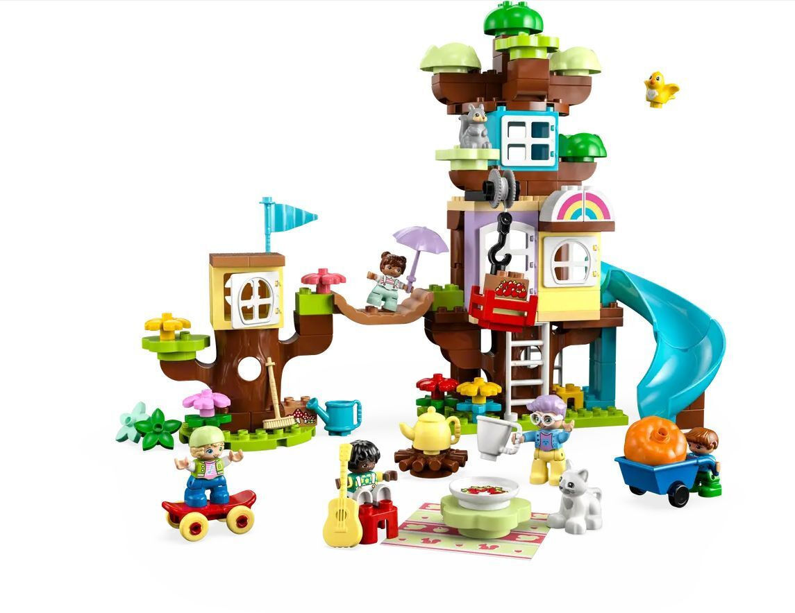 Οι ώρες παιχνιδιού είναι γεμάτες διασκεδαστικές ανακαλύψεις, καθώς τα νήπια εξερευνούν αυτό το γεμάτο χαρακτηριστικά σετ δεντρόσπιτων. Τα παιδιά σκαρφαλώνουν στη ταλαντευόμενη σχοινιά γέφυρα και κατεβαίνουν τη μεγάλη τσουλήθρα στον κήπο. Μπορούν να βοηθήσουν στη συλλογή φρούτων και λαχανικών και να τα πάνε στη γιαγιά στο δεντρόσπιτο. Όταν βρέχει, οι φιγούρες μπορούν να βρουν καταφύγιο κάτω από την ομπρέλα ή να επιστρέψουν στο άνετο δεντρόσπιτο για ένα φλιτζάνι ζεστή σοκολάτα.