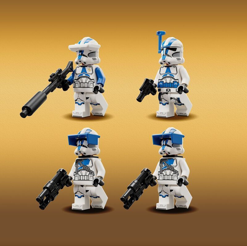 Τα παιδιά μπορούν να αναλάβουν τον έλεγχο της δικής τους μονάδας 501st Clone Troopers με αυτό το LEGO® Star Wars™ Battle Pack σχεδιασμένο για ηλικίες 6 ετών και άνω . Το σετ περιλαμβάνει 4 νέες μίνι φιγούρες – έναν Αξιωματικό της 501st , έναν Ειδικό Κλώνο της 501st και δύο Βαριά Οπλισμένους Κλώνους της 501st , καθεμία εξοπλισμένη με όπλα για δυναμικό παιχνίδι δράσης.