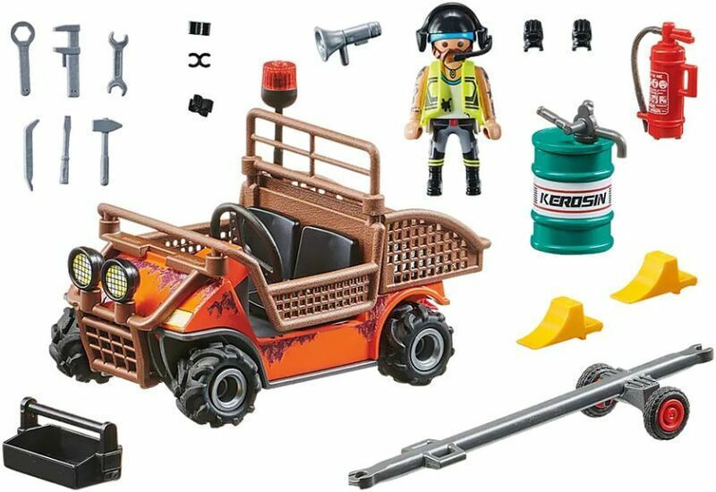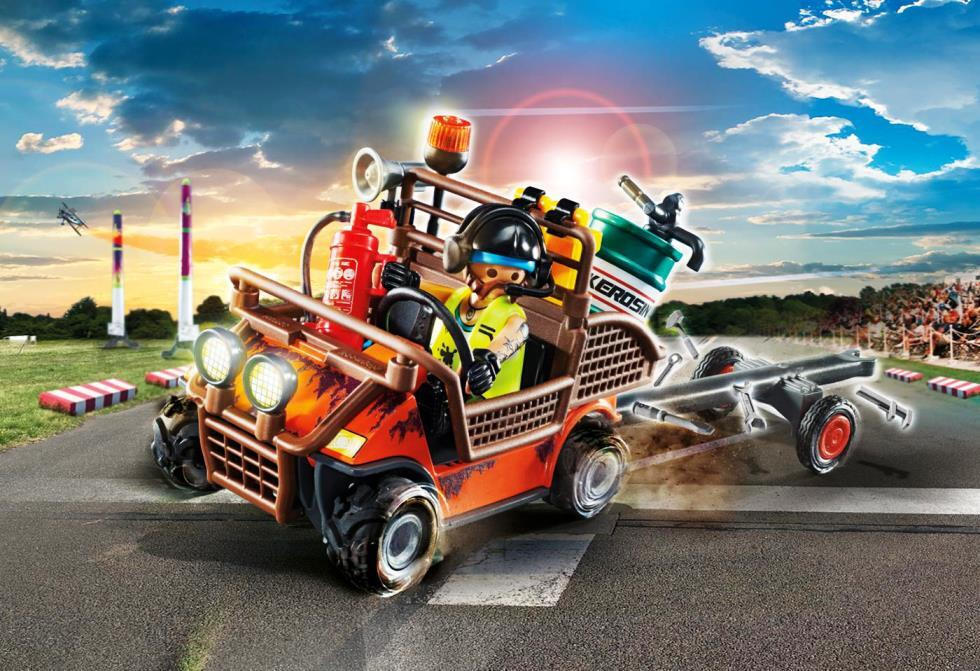Η ομάδα τεχνικής υποστήριξης βρίσκεται επί ποδός για τη συντήρηση και επισκευή των αεροσκαφών. Όταν τα ακροβατικά αεροσκάφη χρειάζονται επισκευή, αναλαμβάνει δράση η κινητή μονάδα συντήρησης & επισκευής αεροσκαφών. Με το όχημα τους μεταφέρουν το αεροπλάνο στο συνεργείο και εάν διαπιστώσουν ότι η βλάβη διορθώνεται επί τόπου χρησιμοποιούν τα εξειδικευμένα εργαλεία τους. Το σετ παιχνιδιού περιλαμβάνει μία φιγούρα Playmobil, βαρέλι με βενζίνη, πυροσβεστήρα και πολλά άλλα εργαλεία.